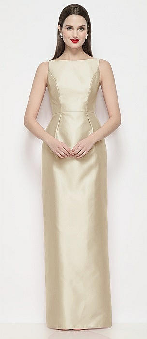 Bateau Neck Satin Maxi Dress with Pleated Column Skirt in champagne