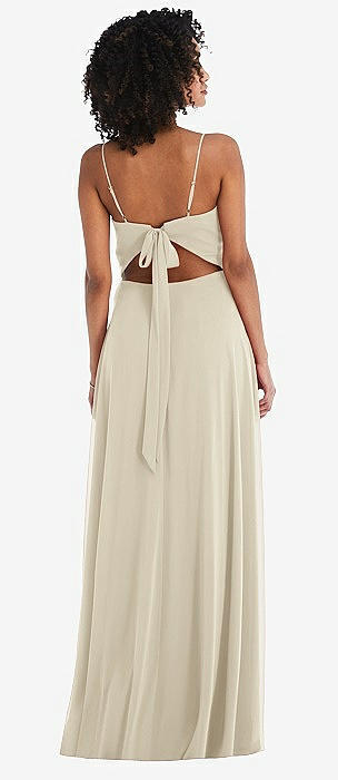 Tie-Back Cutout Maxi Dress with Front Slit in champagne