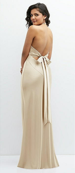 Sleeveless Satin Trumpet Gown with Bow at Open-Back in champagne