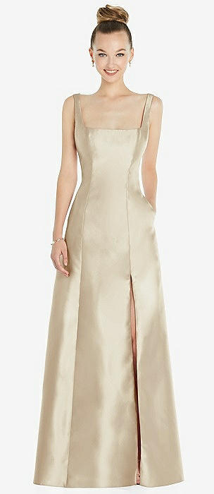 Sleeveless Square-Neck Princess Line Gown with Pockets in champagne