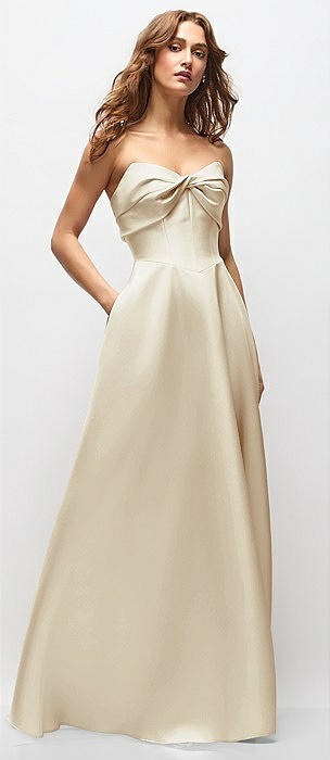 Strapless Satin Column Maxi Dress with Oversized Handcrafted Bow in champagne