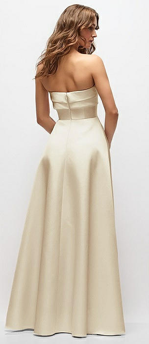 Strapless A-Line Stretch Satin Maxi Dress in champagne