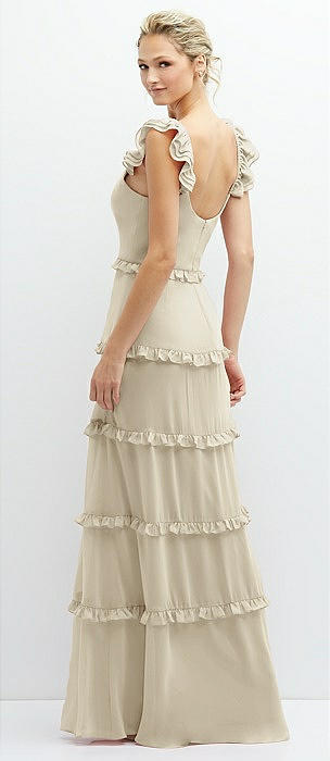 Tiered Chiffon Maxi A-line Dress with Convertible Ruffle Straps in champagne
