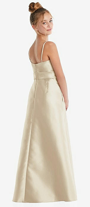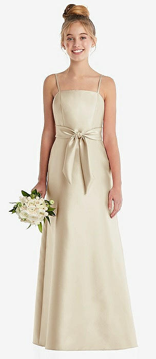 Spaghetti Strap Satin Junior Bridesmaid Dress with Mini Sash in champagne