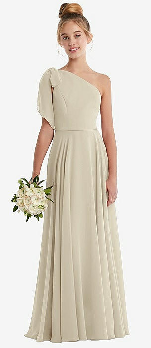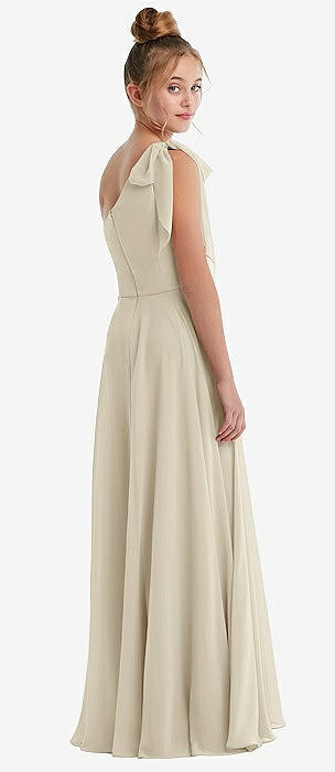 One-Shoulder Scarf Bow Chiffon Junior Bridesmaid Dress in champagne