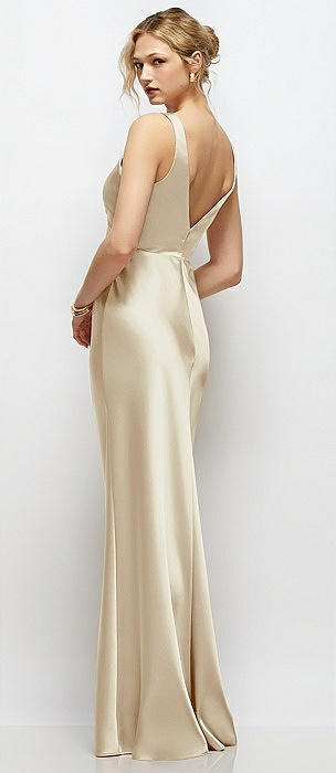 Square-Neck Satin A-line Maxi Dress with Front Slit in champagne