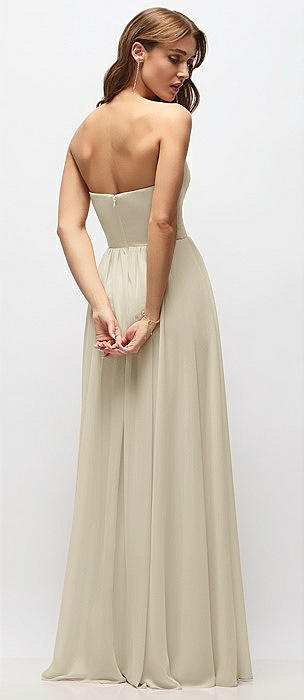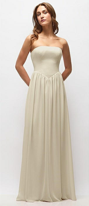 Strapless Basque Drop Waist Chiffon Maxi Dress with Shirred Skirt in champagne