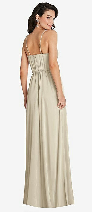 Cowl-Neck A-Line Maxi Dress with Adjustable Straps in champagne