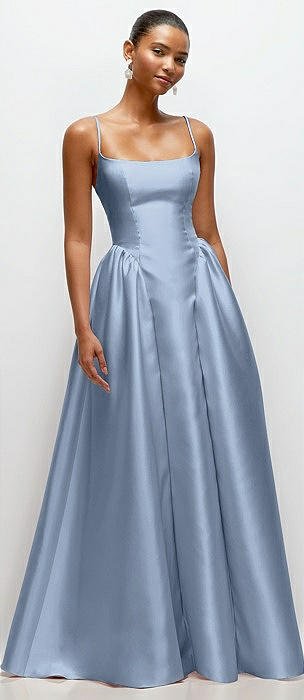 Square-Neck Satin Maxi Dress with Full Skirt in cloudy