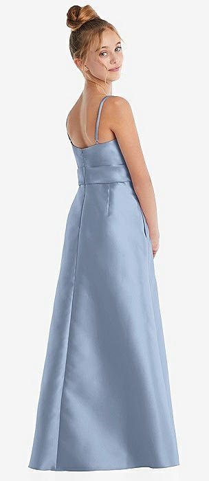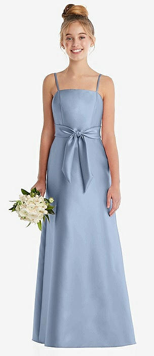 Spaghetti Strap Satin Junior Bridesmaid Dress with Mini Sash in cloudy