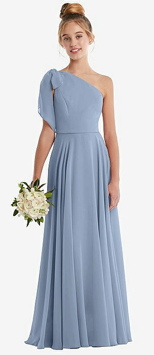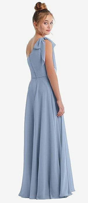 One-Shoulder Scarf Bow Chiffon Junior Bridesmaid Dress in cloudy