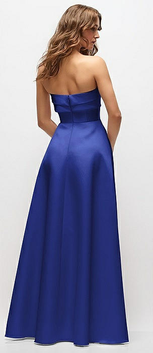 Strapless Draped Bodice Stretch Satin Column Maxi Dress in cobalt blue