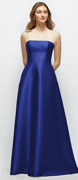 Strapless A-Line Stretch Satin Maxi Dress in cobalt blue