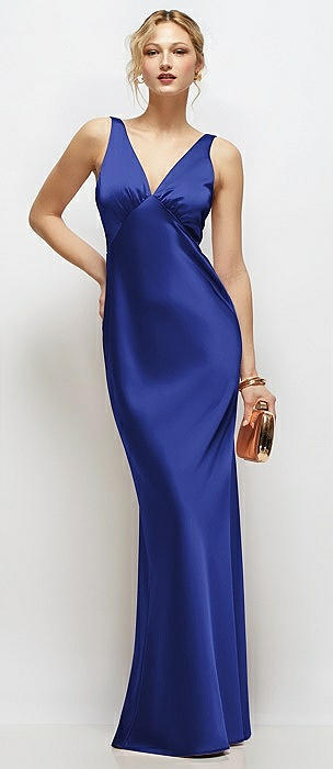 Sleeveless V-Neck Stretch Satin Bias Slip Maxi Dress in cobalt blue