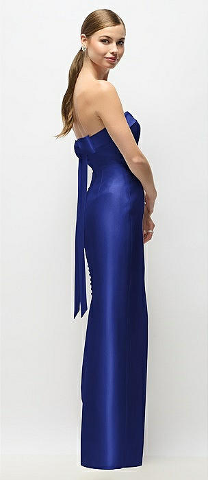 Strapless Cuff Satin Maxi Dress with Column Skirt & Back Bow in cobalt blue