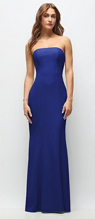 Strapless Satin Column Dress with Removeable Watteau Train in cobalt blue