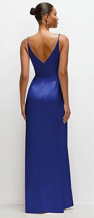 Cowl Neck Satin Maxi Dress with Adjustable Spaghetti Straps in cobalt blue