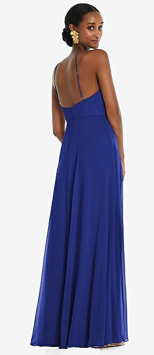 Diamond Halter Maxi Dress with Adjustable Straps in cobalt blue