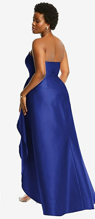Strapless Satin High Low Dress with Pockets in cobalt blue