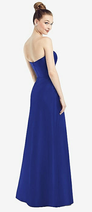 Strapless Notch Satin Gown with Pockets in cobalt blue