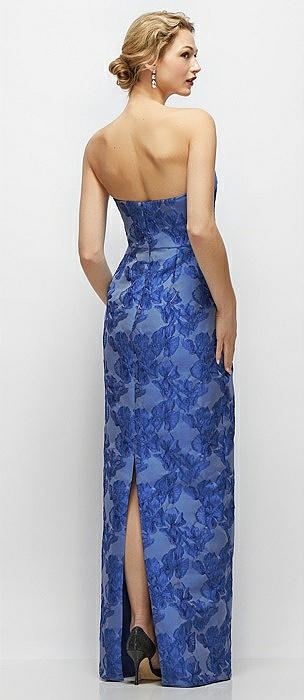Cobalt Blue Metallic Floral Jacquard Bridesmaid Dresses