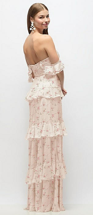 Bustier-Style Chiffon Tiered Ruffle Maxi Dress with Adjustable Straps in coquette floral print
