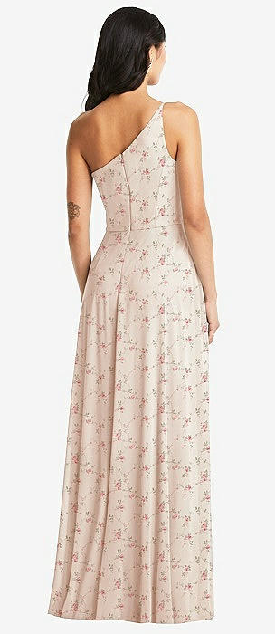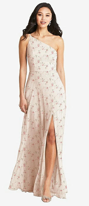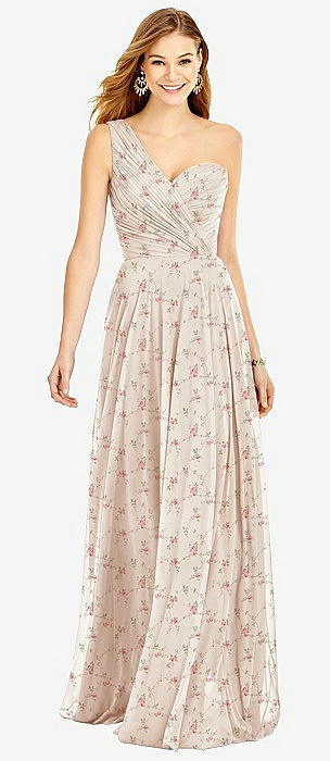 One-Shoulder Draped Chiffon Maxi Dress - Dani in coquette floral print