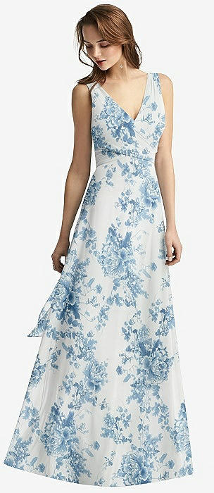 Sleeveless V-Neck Chiffon Wrap Dress in cottage rose dusk blue