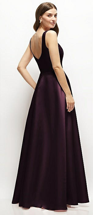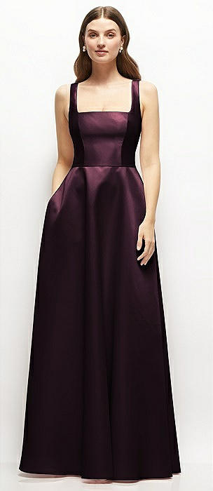 Square-Neck Satin Maxi Dress with Full Skirt in deep plum