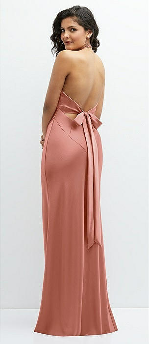 Criss Cross Halter Open-Back Stretch Satin Mermaid Dress in desert rose
