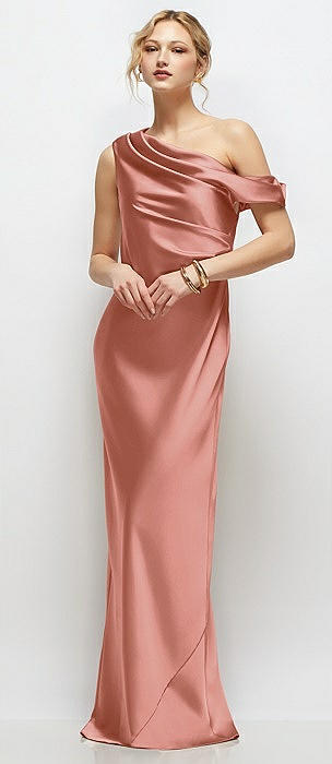 Draped One-Shoulder Bias Stretch Satin Maxi Dress in desert rose