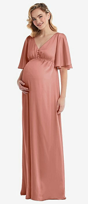 Flutter Bell Sleeve Empire Maternity Dress in desert rose