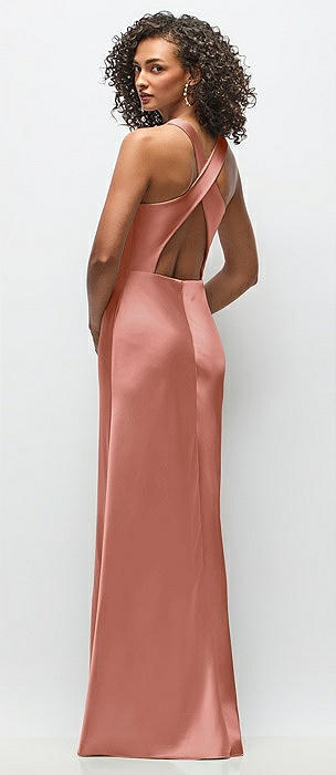 Cowl Neck Criss-Cross Back Satin Maxi Dress in desert rose
