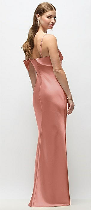 Soft Cowl Neck Ruched Side Satin Bias Maxi Dress with Shoulder Bows in desert rose