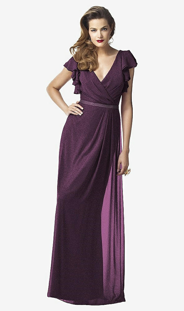 Front View - Aubergine Silver Dessy Shimmer Bridesmaid Dress 2874LS