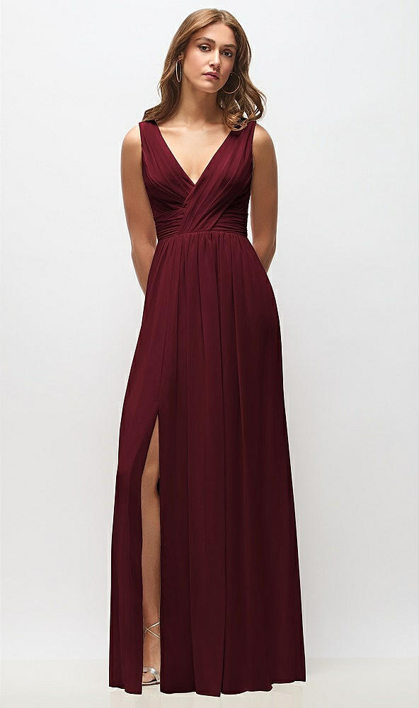 Sleeveless Draped Chiffon Maxi Dress with Front Slit in Cabernet