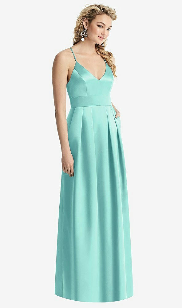 Pleated Skirt Satin Maxi Dress with Pockets in Coastal