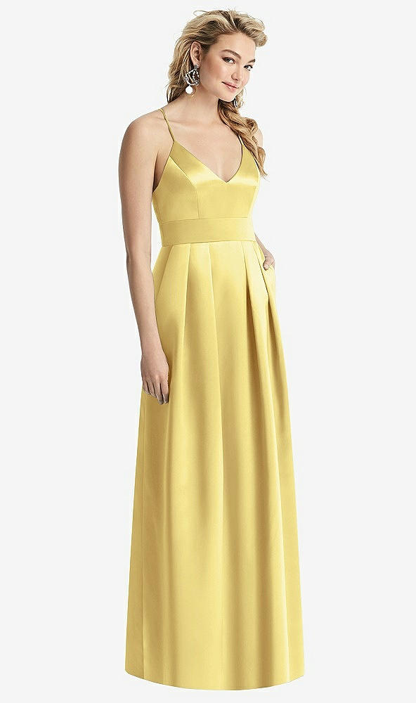 Pleated Skirt Satin Maxi Dress with Pockets in Sunflower