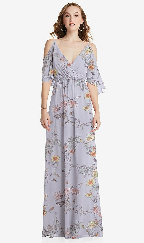 Front View - Butterfly Botanica Silver Dove Convertible Cold-Shoulder Draped Wrap Maxi Dress