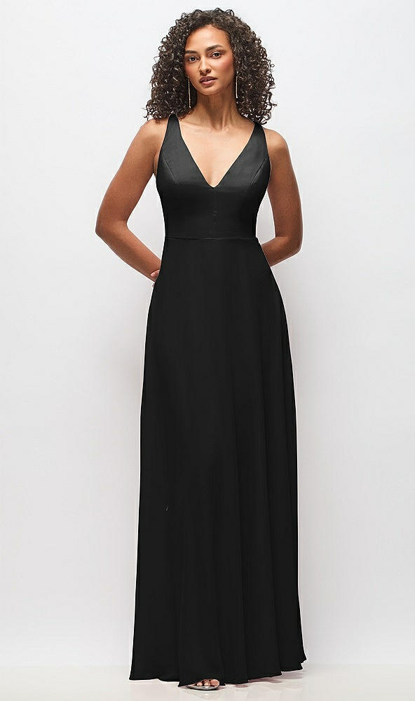 Deep V-Neck Chiffon Maxi Dress in Black