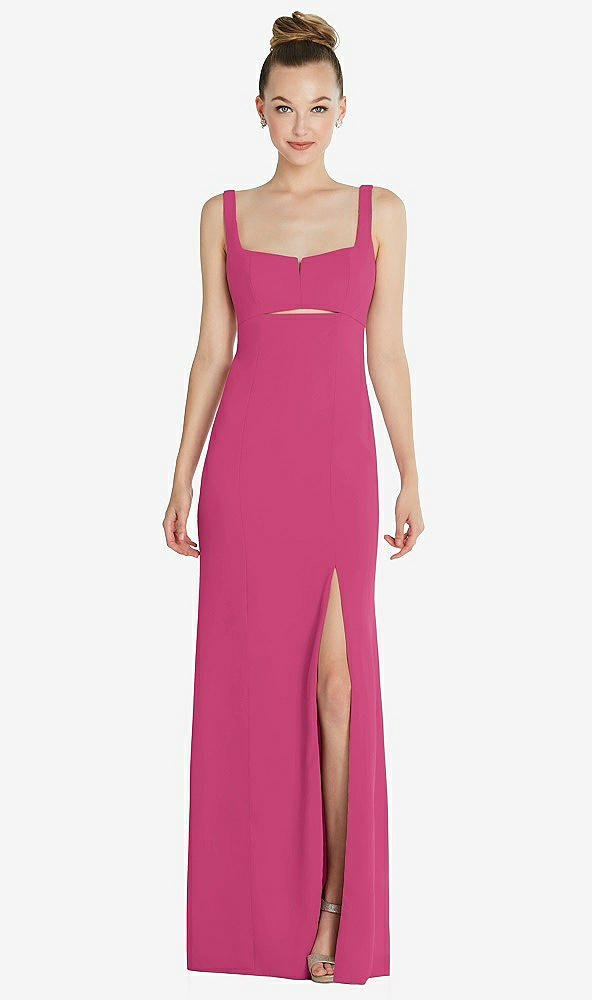 Front View - Tea Rose Wide Strap Slash Cutout Empire Dress with Front Slit