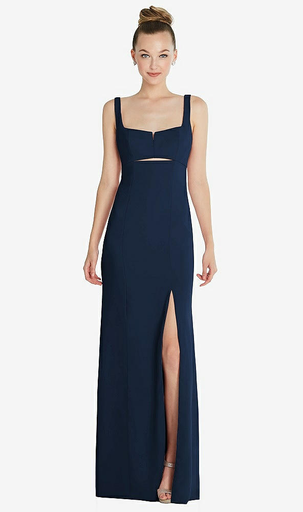 Front View Thumbnail - Midnight Navy Wide Strap Slash Cutout Empire Dress with Front Slit
