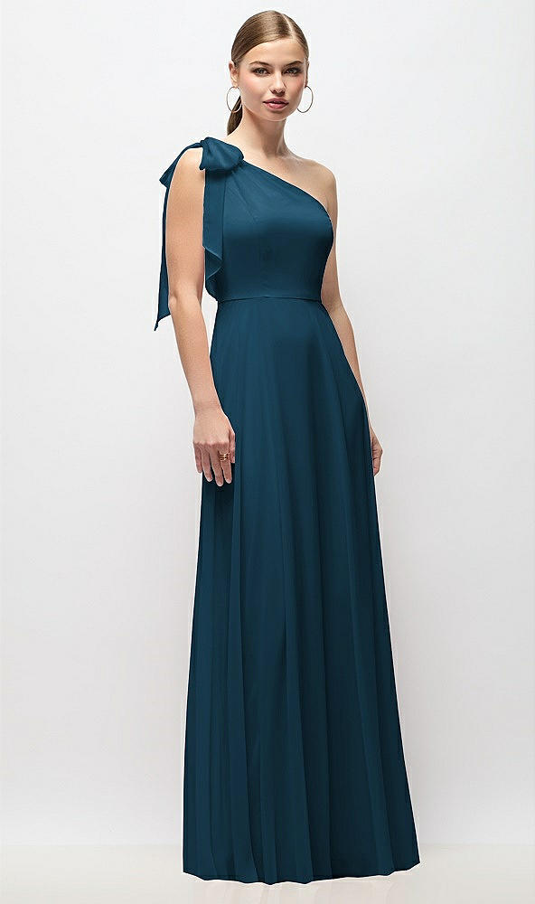 Draped One-Shoulder Maxi Dress with Scarf Bow in Atlantic Blue