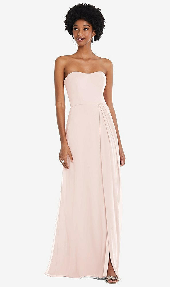 Side View - Blush Strapless Sweetheart Maxi Dress with Pleated Front Slit
