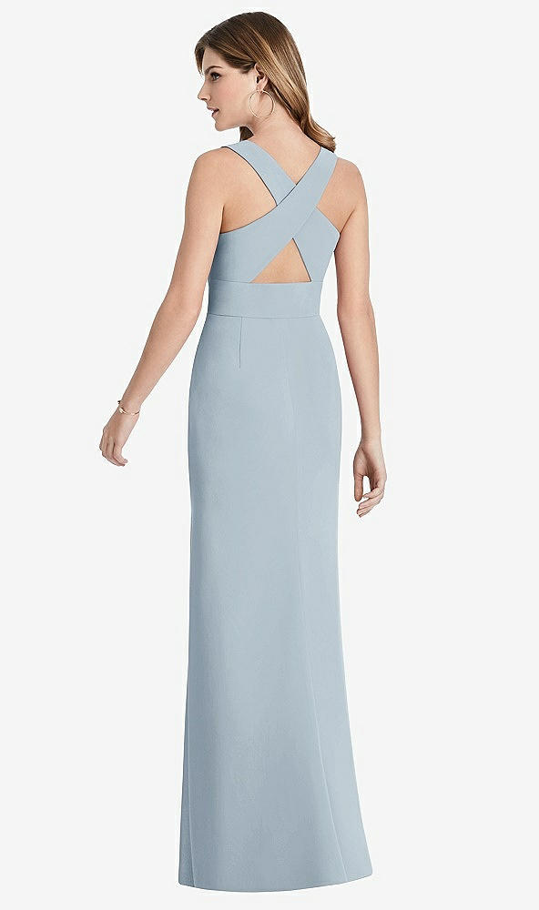 Criss Cross Back Trumpet Gown with Front Slit in Mist