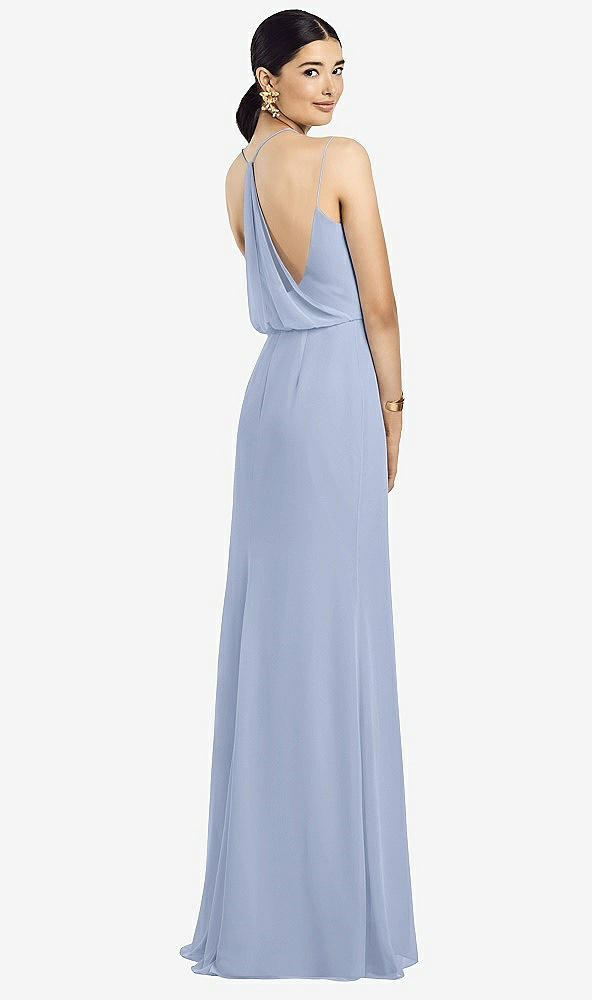 Rear View Thumbnail - Sky Blue Draped Blouson Back Chiffon Maxi Dress
