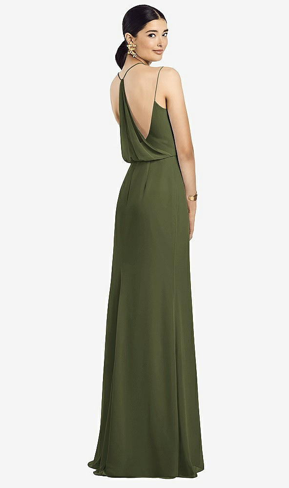 Back View - Olive Green Draped Blouson Back Chiffon Maxi Dress