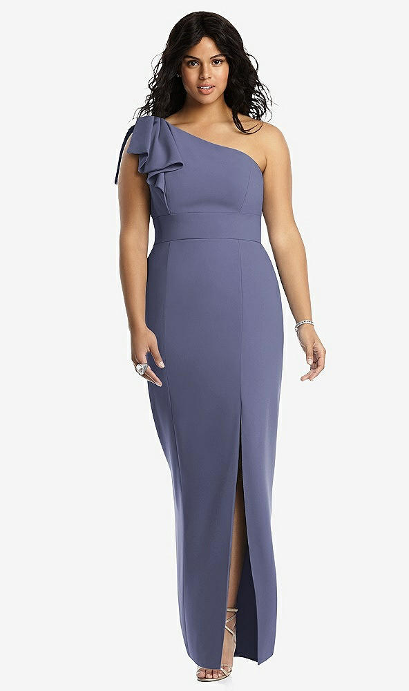 Front View - French Blue Bowed One-Shoulder Trumpet Gown