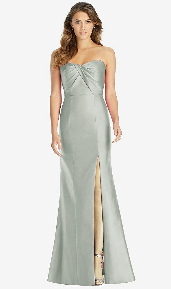 Front View - Willow Green Strapless Draped Bodice Trumpet Gown