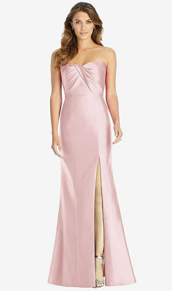 Front View - Ballet Pink Strapless Draped Bodice Trumpet Gown